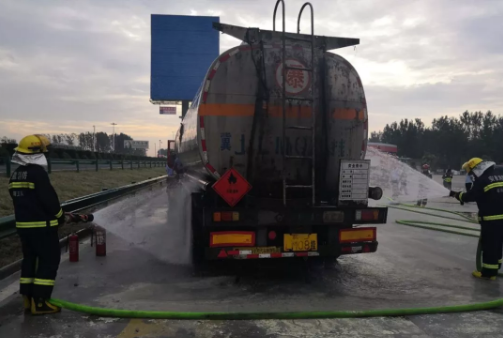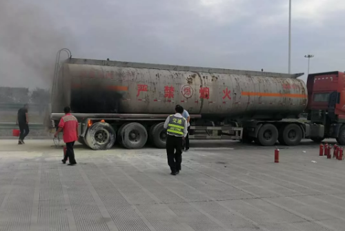 现场快讯!今早阜阳一高速服务区罐车发生自燃!