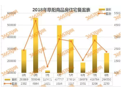 据365淘房数据统计,2018年8月阜阳商品房备案4741套,累计备案面积为38.41万方。8月阜阳新建商品房住宅备案2250套,均价为7699元/㎡;商业备案1841套,均价为23769元/㎡;公寓备案套,均价8991元/㎡