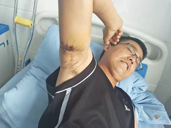 李银军忍着疼痛,一边关心孩子,一边安慰岩岩妈妈。他右胳膊腋下受了伤,血一个劲地往外冒。急救车把他拉到太和县红十字医院,发现他的足跟骨也断裂了。医院立即采取了紧急治疗措施。