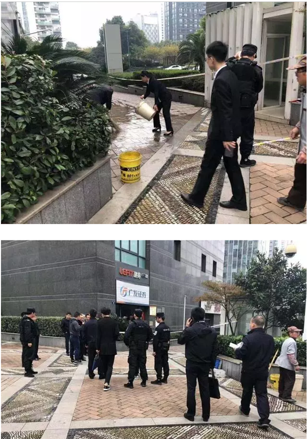 在事发现场看到,有不少民警在勘查,物业工作人员正拎着水桶在清洗现场。