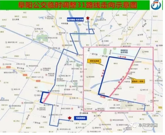 1、线路具体走向:颍泉万达原线至—清河路—阜南路—一道河路—阜王路—淮河路—西清路—市民中心。