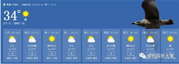 接下来进入正题!预计今天受台风“玛莉亚”外围云系的影响,全市平均风力增大至4级左右,阵风6~7级,部分地区有阵雨或雷雨天气。明天起我市将出现持续性的高温晴热天气,最高气温可达35℃以上,请注意防暑降温,高温时段尽量减少户外活动,注意防范因用电量过高、电力负载过大而引发的火灾等。
