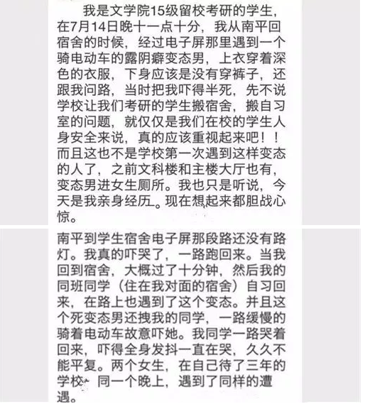 阜阳师范学院西湖校区现变态男骚扰女生!警方已介入调查!