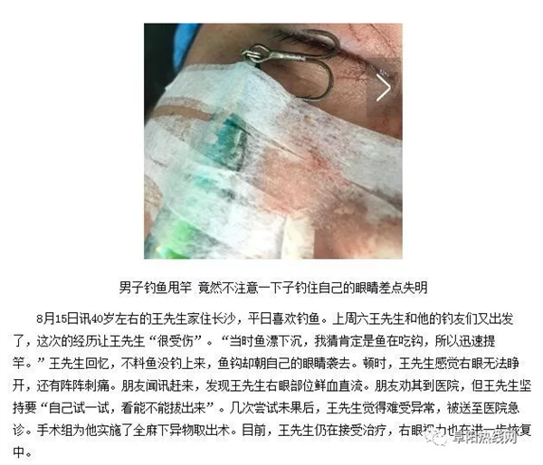 看着都疼!鱼钩扎进眼睛里,阜阳一男子险失明…