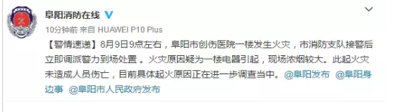 阜阳创伤医院一楼起火!