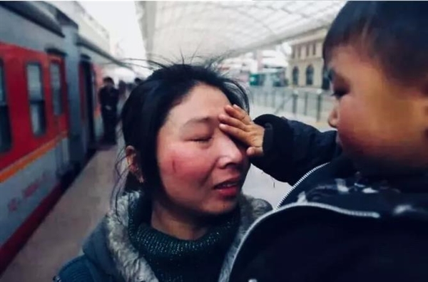 大年初三,火车站站台上,一位小朋友为母亲擦去离别的泪水。妈妈不哭,你放心吧,我一定会乖乖的……团圆的滋味还未享受够,妈妈又要坐上远方的列车,开始新一年的忙碌,又将是新一轮的等待......